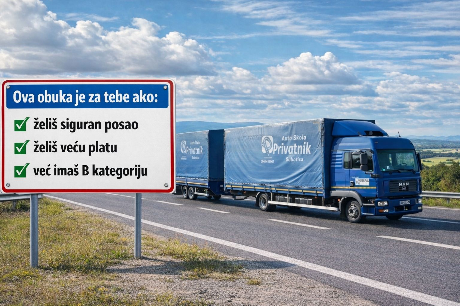 - Nije potrebno polaganje teorijskog dela ispita, već se obuka za CE kategoriju sastoji od 7 časova praktične obuke.