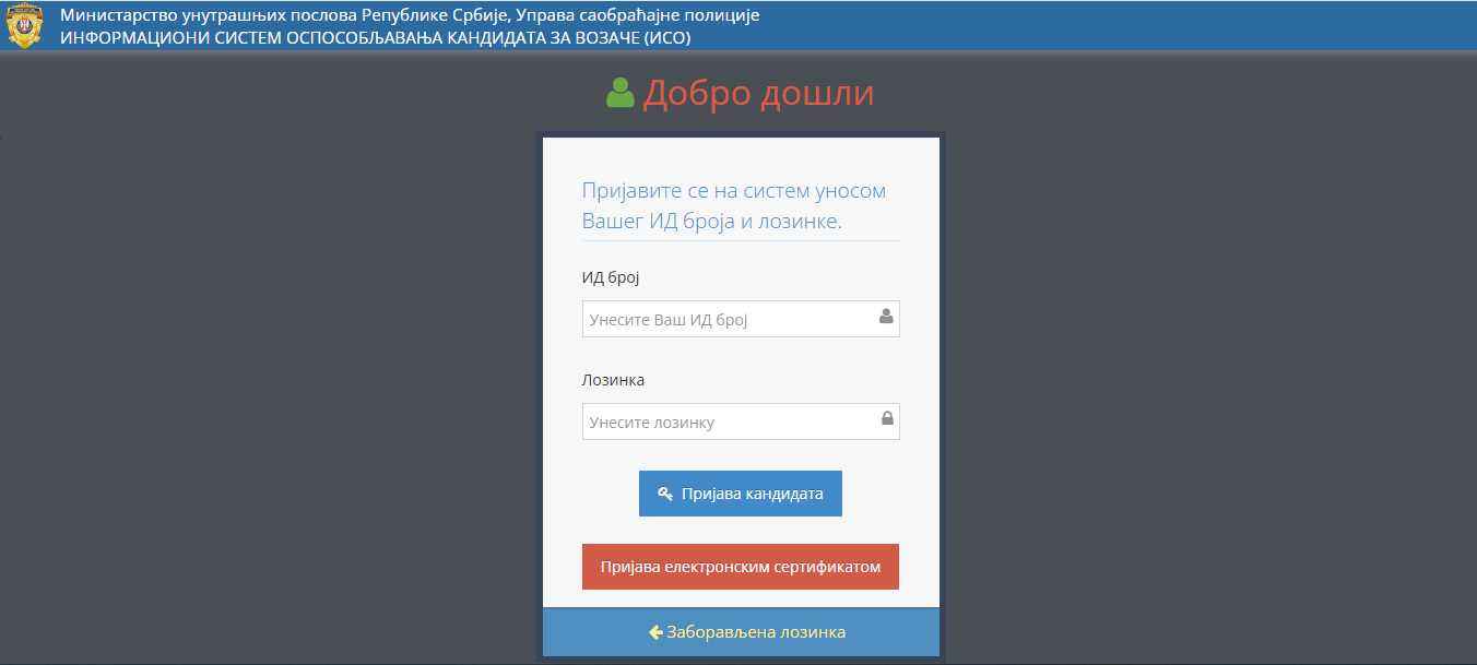 PRIJAVITE SE NA INFORMACIONI SISTEM OSPOSOBLJAVANJA KANDIDATA ZA VOZAČE -MUP Republike Srbije (ID i lozinku dobijate od auto škole)
